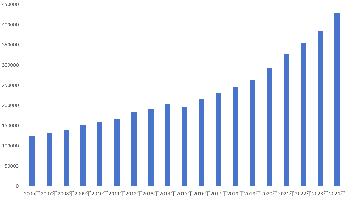 3、2006-2024年歷年可再生能源發(fā)電量數(shù)量統(tǒng)計
