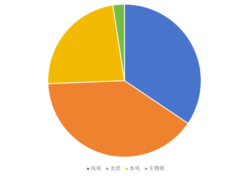 2、可再生能源發(fā)電裝機容量結(jié)構(gòu)(風電+光伏發(fā)電+水電+生物質(zhì)發(fā)電)