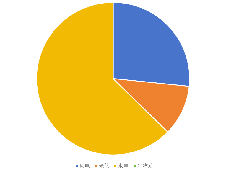2、可再生能源發(fā)電裝機容量結構(風電+光伏發(fā)電+水電+生物質發(fā)電)