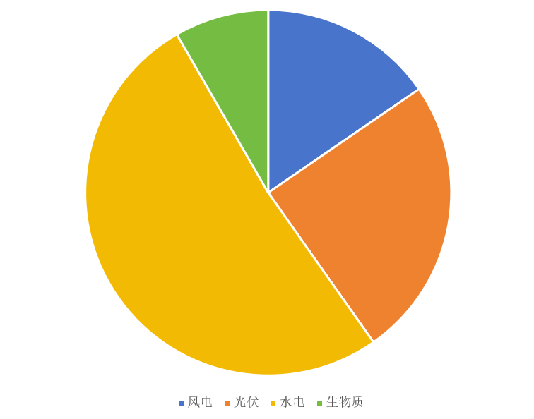 2、可再生能源發(fā)電裝機(jī)容量結(jié)構(gòu)(風(fēng)電+光伏發(fā)電+水電+生物質(zhì)發(fā)電)