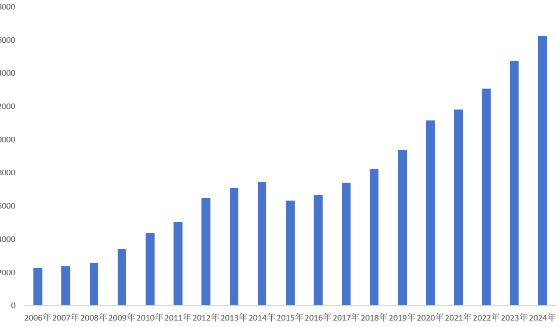 3、2006-2024年歷年可再生能源發(fā)電量數(shù)量統(tǒng)計