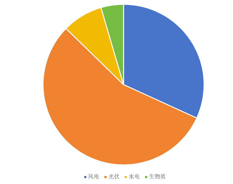2、可再生能源發(fā)電裝機(jī)容量結(jié)構(gòu)(風(fēng)電+光伏發(fā)電+水電+生物質(zhì)發(fā)電)