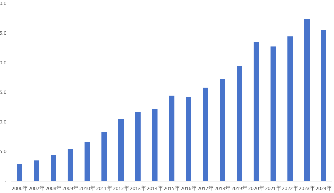 1、2006-2024年歷年可再生能源發(fā)電裝機(jī)容量數(shù)量統(tǒng)計