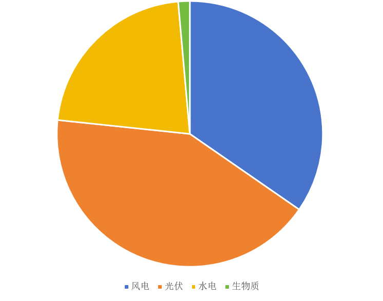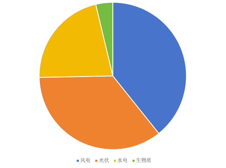 2、可再生能源發(fā)電裝機(jī)容量結(jié)構(gòu)(風(fēng)電+光伏發(fā)電+水電+生物質(zhì)發(fā)電)